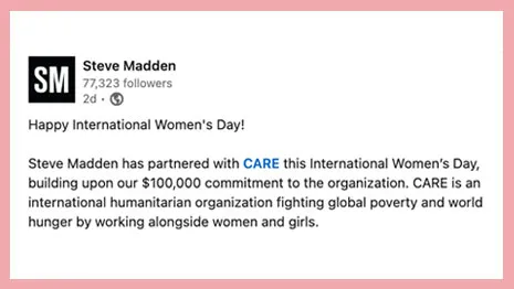 With significant media attention, including a segment on Good Morning America, more than 35 major media placements, and involvement from 28 celebrities, CARE maintained #1 share of voice among INGOs on International Women's Day.