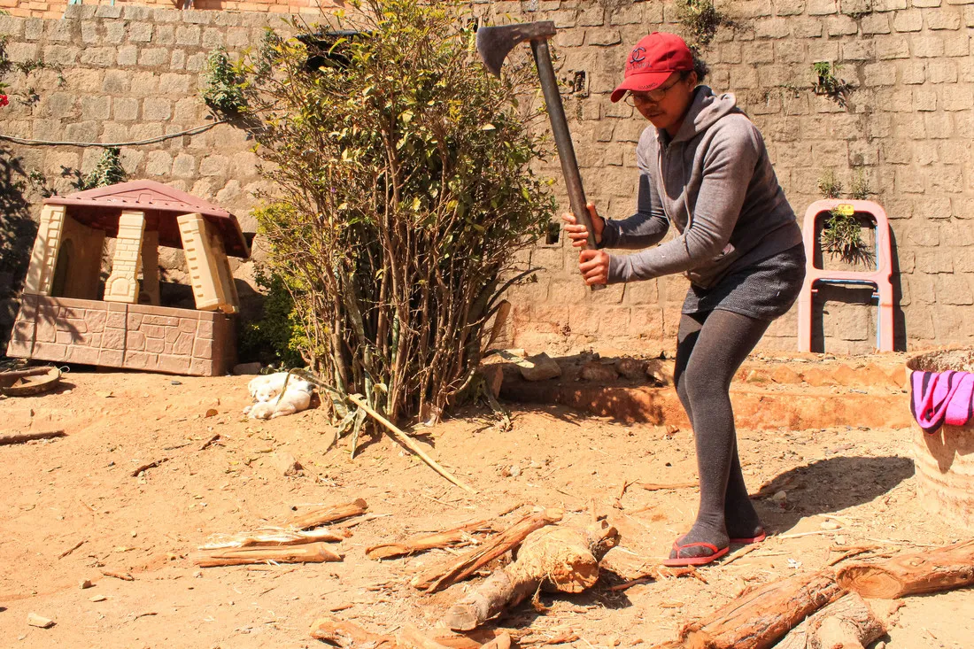“I was living with my parents and two siblings in extreme poverty in Antananarivo. Both of my parents dropped out of school at a young age, so they relied on farming to be able to feed the family. When this wasn’t enough my father would also go to the forest to collect wood to make charcoal and my mother would do laundry for other families. After school my brother and I would help carry the wood for charcoal and my little sister was left to sleep under a tree while we all worked.